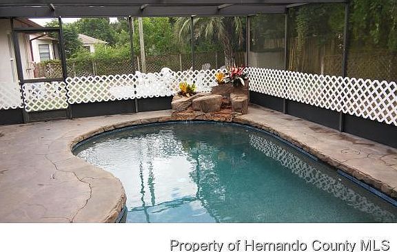 Extremely Specious open floor plan in this 3 Bedroom, 2 Bath, Pool home. Formal Living Rm & Dining Rm, Great Rm, Kitchen w/wood cabinets ex-lg pantry, newer Refrig & Self-clean stove, Breakfast Bar. Nice size Guest Rms. w/ plenty of closet space. Lovely stone-like floor finish in Master Bedrm and Bath area, Walk-in closet. Some fresh paint in interior. River Rock finish Pool w/waterfall, stone-like finish in Lanai. Lots of windows, light and bright. Lots of tile, high ceilings. Inside Laundry with newer LG front loading washer & dryer. Brand new A/C 2015, Re-roofed 2003, Nice yard w/ fire-pit. Centrally located to shopping, schools etc..