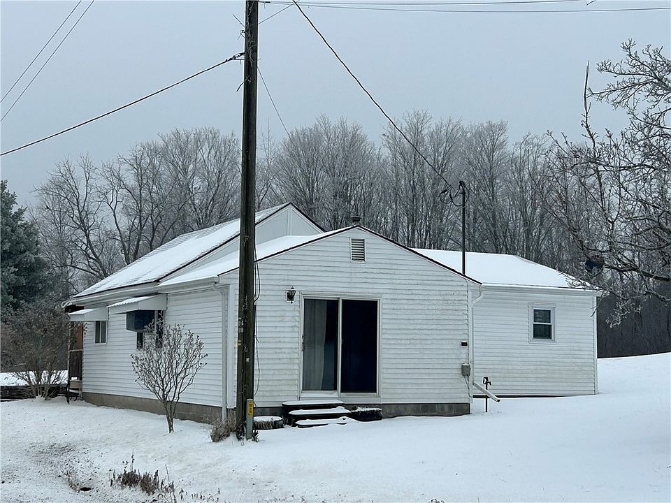 First time this family home has ever been on the market! This quaint country home boasts a bright kitchen, large living room, 2 bedrooms and a full bath. There are two smaller rooms that have been used as bedrooms but either would make a great office or den! There are washer/dryer hookups, wall AC, efficient wood pellet stove with a freestanding propane vented heater being the primary source of heat. Outdoors there is a nice covered deck and 1.6 pretty acres with lots of greenspace in the backyard to enjoy. The roof is only 6 years old, the windows have been replaced, newer siding and hot water heater... decent little place for a first home or those looking for one floor living! Sellers intended to tear down the old garage this Spring - the floor is concrete, providing a great start for a new garage! Property is centrally located, any way you go the drive is scenic - enjoy your ride to Watkins Glen, Ithaca, Geneva or any Finger Lakes destination! Please do not enter the garage, the kitchen stove will need to be replaced.