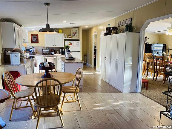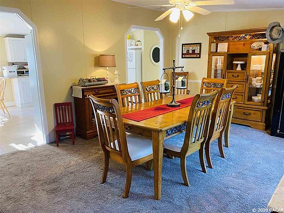 Beautiful 4 bedroom, 2 bath renovated mobile home nestled between Trenton and Newberry, on Addy Jones Rd. The home is located on a paved road right off of State Road 26, providing quick access to Alachua County conveniences while still tucked away in the serene, country life right outside the city. This country charmer welcomes you with a gorgeous, manicured landscape, long driveway, and a lovely wood deck. Enter into the formal dining area which could also serve as a family room. Extra large arched accent doorways lead into the spacious, fully renovated kitchen boasting an island/serving bar, new white/stainless steel appliances, and a window overlooking the backyard. Separate dinette area with enough space for a dining table. Formal living room features large windows allowing for natural sunlight and an aesthetic fireplace. Master bathroom features ceramic tile flooring, new vanity set with double sinks, and a relaxing garden tub perfect for melting away stress after a long day. Master bathroom also includes a recently renovated custom tiled shower with seating space. Separate indoor laundry area with washer/dryer hookups and a door leading to the large backyard. Shed also included with property.
