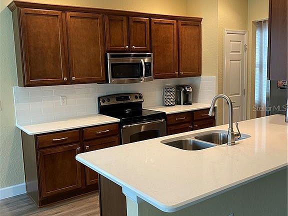 Alexander Villa 2+den/2/2 with privacy landscaping in rear yard. New luxury vinyl plank flooring, new carpet, new tile in master bath, and 5.25" baseboards new as well. Kitchen has upgraded maple 36" cabinets with hardware, new tile backsplash, new granite countertops, SS appliances, and upgraded corian countertops. Laundry has cabinets, folding table for laundry and inside utility sink area. Shutters, fresh paint, ceiling fans and a few other upgrades finishes off this highly sought after twin villa. This home provides the true maintenance free living you are looking for. HOA includes exterior paint, power washing, insurance on building, roof maintenance and replacement, yard pest and weed control, cut/blow/trim, mulch 2x per year, scrub and tree maintenance and replacement, as well as all the basic HOA included items. If you are looking for 1709 sq ft of maintenance free living you are going to be thrilled with this one. Full time or seasonal this home gives you plenty of living space so you will not feel like you are living in a tiny home. Schedule an appointment to view today!!!!