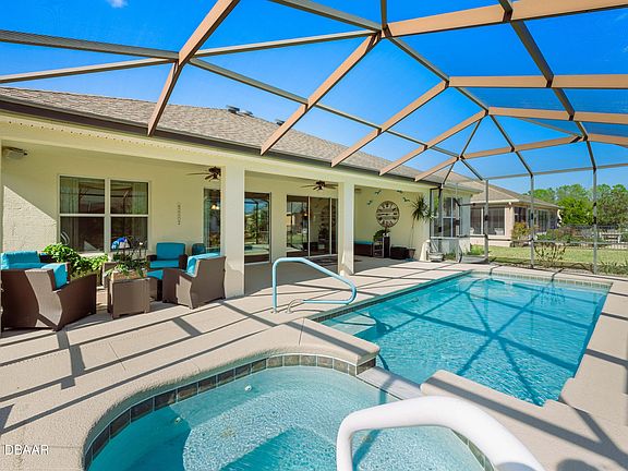 Welcome to Stone Creek, a premier 55+ golf club community where elegance meets easy living! This meticulously maintained Johnstown model in the sought-after Buckhead neighborhood offers 3 bedrooms, 2 bathrooms, and a spacious 2-car garage with an additional golf cart bay. Step inside to soaring 10-foot ceilings with elegant crown molding (2016) and an open-concept design that seamlessly connects the great room, kitchen, and dining area. Large sliding glass doors open to a covered and screened lanai (rescreened in 2022), where your private saltwater pool and spa awaitperfect for unwinding after a long day! The spacious kitchen is both stylish and functional, featuring oversized 42'' cabinetry, expansive counter space, and a large island. The primary suite offers a custom walk-in closet and an en-suite with a soaking tub, step-in shower, and dual vanities. Two additional bedrooms provide plenty of flexibility, with one even featuring a custom-built wall bed for guests! Designed for both comfort and convenience, this home boasts ceramic tile in main areas, luxury vinyl plank in the bedrooms, an oversized laundry room with full counters and a utility sink, and enhanced lighting throughout. A 4-zone surround sound system ensures music can be enjoyed inside and out, including on the poolside patio. The oversized garage includes a separate golf cart bay and sliding screen panels, allowing you to enjoy the fresh air. Major updates include a new roof (2022), water heater (2022), and HVAC (2018). Living in Stone Creek means access to resort-style amenitiesincluding golf, a clubhouse, fitness center, swimming pools, a restaurant, and more. Don't miss out on this incredible opportunityschedule your showing today!