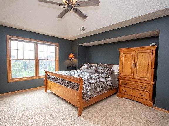 Move in ready... all landscaping complete, fencing, window treatments...6 Bedrooms...lots of possibilities. A walk in closet w/ built in cubbies! Main floor bedroom, basement bedroom both with 3/4 baths convenient to them. 4 bedrooms on upper level plus laundry too! COMPARE bedroom sizes w/ this home!! Allergies? Pet free the whole time! Then a kitchen you have been waiting for, so many cabinets to utilize & enjoy. 9' ceilings too. 2nd family room is 38x15 and that is not a typo! Outside entertaining with deck, patio and fenced backyard filled with fun landscaping. Continue in the lower level wet bar all set up perfectly. Garage door heights are 8 feet! Come see this custom built home comforts of an umbrella heating system. The heating and cooling comes from vents on the ceilings upstairs to cool your upstairs amazingly with hot air rising nicely for cozy winters too. Sellers chose Andersen windows! 2 Honeycrisp apple trees! Irrigation system to boot.