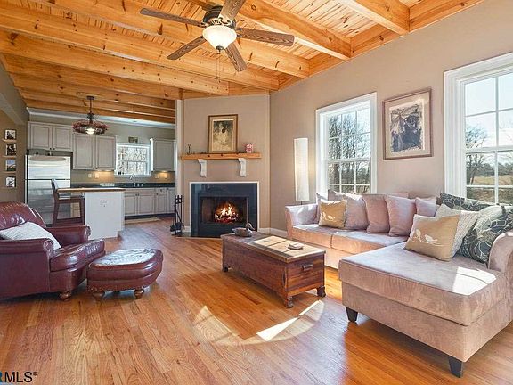 Minutes from historic Scottsville, this newer home on 21+ acres is private AND accessible! Exposed beams on the main level, hardwood pine floors throughout, this home has a gourmet kitchen with island, wood-burning fireplace, 3 bedrooms, 2.5 baths and a study/office. The private deck overlooks the acreage which is beautiful hardwoods and full of wildlife. A paved driveway is a cinch to maintain no matter the weather, and the modern finishes balance nicely with a county feel. Room enough for expansion, garages, sheds, to expand as much or as little as you want! The basement is bright, walk-out and mostly finished. A solid country property with great land, contemporary feel, minutes from the historic Hatton Pole Ferry! Move-in ready.