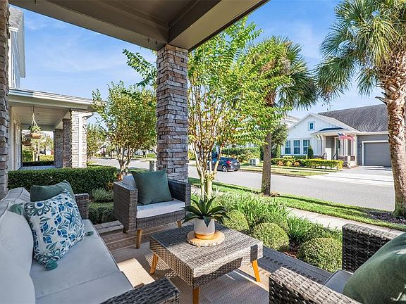 Under contract-accepting backup offers. One or more photo(s) has been virtually staged. *** Spacious Lake Nona Retreat **Beautiful and rarely available, this David Weekley Homes Wharf floor plan offers four bedrooms, three full baths and 3,244 square feet of light filled living space in the heart of Lake Nona’s Laureate Park in Orlando. Curb appeal shines with stone wrapped columns, a deep covered front porch and a statement teal front door that sets the tone for the rest of the home. Inside, a welcoming foyer opens to a large private office at the front of the home and flows into an expansive open concept kitchen, dining area and living room, all wrapped in windows for an airy, connected feel. The gourmet kitchen features an oversized island with seating, stainless steel appliances, abundant cabinetry, a walk in pantry and long stretches of counter space that are perfect for entertaining. The thoughtful layout includes a first floor bedroom with a generous closet and an adjacent full bath with a step in tiled shower, an ideal setup for aging parents, long term guests or a quiet retreat. Upstairs, the floor plan centers around a spacious loft that works beautifully as a second living room, media room or play space. The serene primary suite spans the back of the home and features a tray ceiling, large walk in closet space and a spa inspired bath with an oversized shower, separate vanities and excellent storage. Two additional bedrooms share a well appointed full bath with granite counters and stylish tile, and the upstairs laundry room is conveniently located near all three bedrooms. Out back, a detached three car garage frames a cozy yard with plenty of room to design your dream outdoor living area, this space can become a beautiful courtyard style retreat. This four bedroom Lake Nona home with loft and three car garage combines luxury, function and location, just minutes from Lake Nona Town Center, Medical City, restaurants and parks.