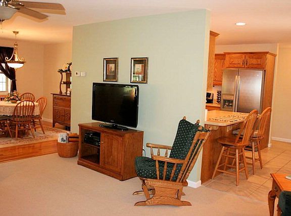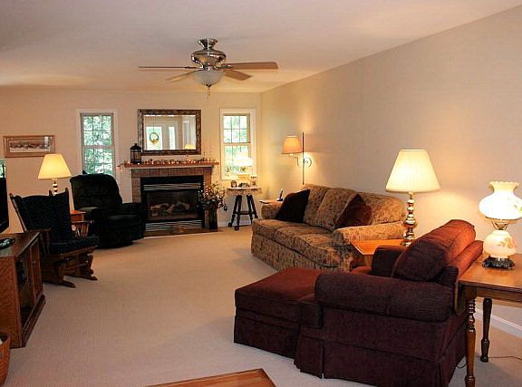 Well designed ranch with oak and ceramic floors has an open floorplan. 13X19 living rm opens to dining rm and eat-in kitchen with oak cabinets and solid surface counters. Master suite has private bath with double sinks and large walk-in closet. Porch off kitchen has a forest view. 2 car attached garage connects to laundry area. Full walk-out basement would be a perfect game or shop area.