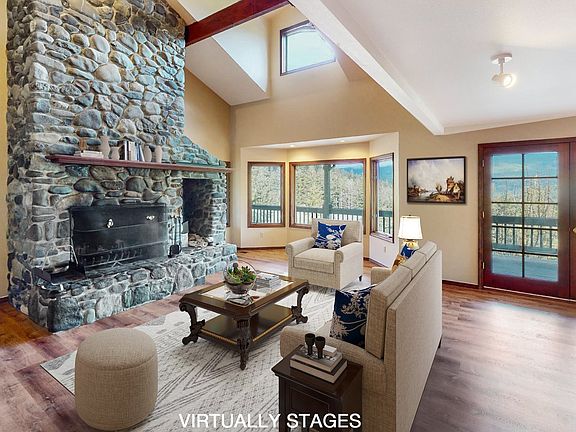 Live in a place where you can see the stars at night and experience nature's beauty every day! This is that place. Stunning mountain views, established gardens, and plenty of space for everyone. You'll love the oversized owner's suite with ample windows that let in natural light, living room with soaring ceilings and a massive fireplace, den/office for working from home, sunroom off the kitchen for enjoying your morning coffee while looking over the garden and the wrap-around decking that provides plenty of outdoor living at its finest. Luxury Waterproof Vinyl Plank Flooring throughout the lower level. Room to add a shop/detached garage. This is a well built, custom home - worth a look!