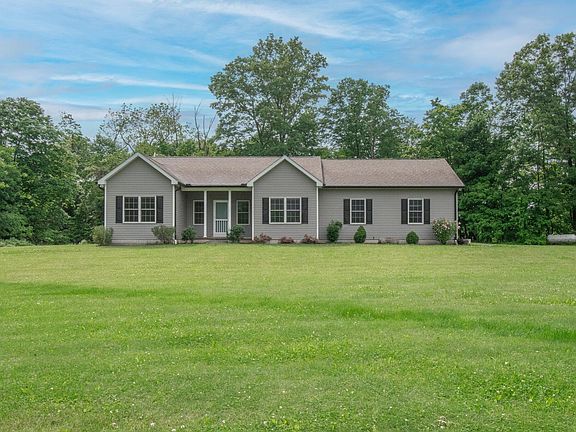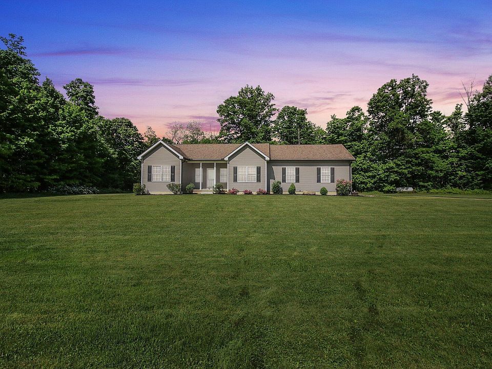 Tranquility awaits in this supremely private ranch home. Traverse the half mile driveway to arrive at a nature lover's haven situated on 16.92 acres of fields and woodlands and backing to Poplar Creek. The residence includes a gourmet kitchen with stainless steel appliances, KraftMaid cabinetry, and granite countertops. Ten-foot ceilings with numerous transom windows throughout create an open and airy space to catch a cross breeze or listen to the many species of birds. There is a rough in for an additional bathroom in the huge, poured wall basement. The main level has a flex space, perfect for a dining room, office, or possibly a fourth bedroom. Many additional upgrades. If a serene country life is what you are looking for, you will not want to miss this truly exceptional opportunity.