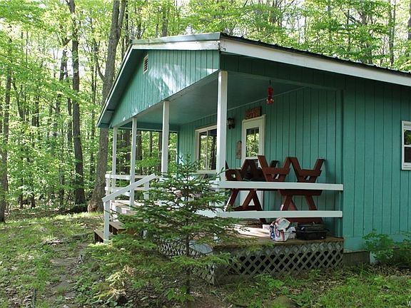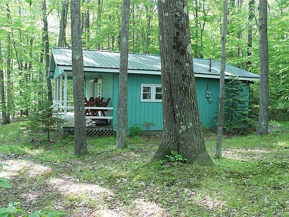 ALL YOU NEED FOR A WEEKEND RETREAT OR A LONG STAY! NICE, WELL MAINTAINED CABIN IN THE WOODS. CORNER LOT EASY TO GET TO ANYTIME OF YEAR! RUSTIC FENCING, WOODED LOT. GREAT COVERED PORCH WITH WRAP AROUND DECKING (NEW WOOD), LOW MAINTENANCE. ENTER FROM FRONT PORCH AND SIDE YARD. OPEN FLOOR PLAN GREAT FOR FAMILY GATHERINGS. MOST FURNISHINGS INCLUDED. GREAT LOOKING WOOD STOVE, CENTRAL HEAT, CLEAN CARPET, NEW VINYL REPLACEMENT WINDOWS, GREEN METAL ROOF, LARGE BATHROOM, NEW TOILET AND HOT WATER TANK, CIRCUIT BREAKERS, 2 BEDROOMS WITH CLOSETS. BLOCK FOUNDATION WITH CRAWL SPACE. LOW MAINTENANCE YARD-MOSTLY WOODED. COULD EASILY BE A YEAR ROUND RESIDENCE. SIMPLY PUT - THIS IS A NICE PROPERTY!