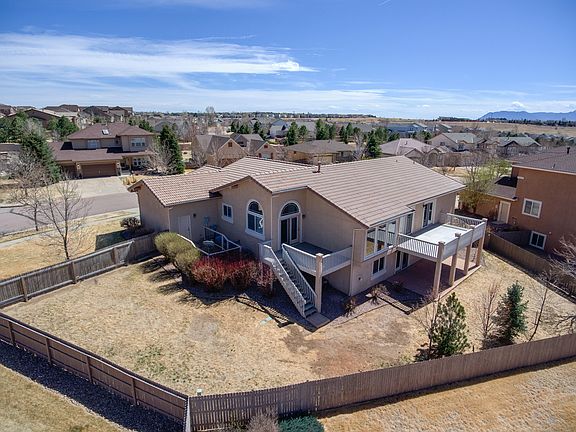 Gorgeous Pine Creek Location~ 5BD/3B/3CAR Ranch w Finished Walkout Basement ~ Stucco Exterior & Tile Roof. 4260 sq ft, 1/3-acre lot, D-20 Schools. Great room features vaulted ceilings, multiple windows, & gas stone fireplace shared with dining room. Garden doors walk out to large composite deck for both city & Front Range views. Kitchen & eat-in dining area feature vaulted ceilings, stainless steel appliances, island w breakfast bar, message center, pantry, adjoining laundry room & walk-out to a deck w backyard access. The main-level master retreat features a 9' ceiling and walk-out to a spacious deck with the same stunning views. The master bath offers a double vanity, solid surface counters, over-sized jetted tub, walk-in shower w/bench and walk-in closet. A 2nd bedroom w/walk-in closet, full bath and office complete the main level. Finished walk-out basement includes a wet bar, beautiful stone gas fireplace, space for gaming tables and a media area. Rounding out the basement are 3 additional bedrooms w/walk-in closets, a 3/4 bath w/solid surface vanity and an large storage room with built-in shelving. Three outdoor living spaces, amazing views and the fully fenced backyard provide a safe and enjoyable space for the whole family & pets. Easy access to schools, shopping, dining and entertainment! I-25 and Powers Boulevard are just minutes away. Great Room Incredible great room features vaulted ceilings and multiple windows that allow abundant natural light to flood the space! The cornerstone of this wonderful gathering spot is an impressive gas stone fireplace, which brings warmth and character to both the great room and the formal dining room. Garden doors provide walk-out access to the large composite wood deck from which both city and Front Range views will be enjoyed. Kitchen This spacious kitchen and eat-in dining area feature a vaulted ceiling, multiple windows, stainless steel appliances and an island with additional storage and a counter-height breakfast bar. A large message center, pantry, garage access and walk-out to another patio with backyard access really make this the hub of the home. Icing on the cake is the adjoining laundry room with lots of storage space and a sink. Master Retreat A peaceful and functional destination for the end of a long day! This main-level private retreat features 9' ceiling and garden-door-walk-out to a spacious deck and stunning city and Front Range views. The master bath, which is flooded in natural light, offers a double vanity, solid surface counters, over-sized jetted tub, walk-in shower w/bench and walk-in closet. Bedrooms This home's versatile floor plan provides both the master retreat and a 2nd bedroom, including a large walk-in closet, on the main floor. All 3 basement bedrooms are roomy, feature walk-in closets and offer natural light. The main level office, with its vaulted ceiling and French doors, could easily be modified to serve as an additional main level bedroom, nursery, music room or sitting room. Finished Lower Level Finished walk-out basement features everything you need for entertaining or just relaxing with family and friends including a wet bar and beautiful stone gas fireplace. There is more than enough space for gaming tables and a media area...truly a sports fan or movie buff's dream! Rounding out the basement are 3 bedrooms - each with a walk-in closet, a 3/4 bath w/solid surface vanity and additional storage space with built-in shelving. Outdoor Living Spaces This home, with 3 outdoor living spaces, is made for entertaining and enjoying the casual Colorado life. Two decks on the main floor allow easy access to the outdoors and serve as an extension to the entire rear of this home. The large cement patio from the basement walk-out provides a shady retreat for hot summer days while the fully fenced backyard offers a safe play space for children & pets. Professional landscaping and incredible Front Range views seal the deal!