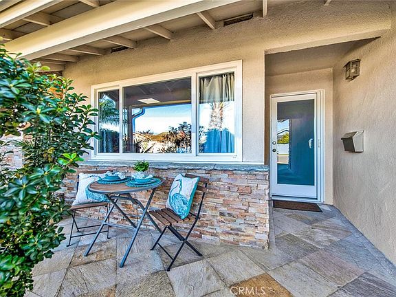 Welcome home to 9584 Robin Ave, a beautifully appointed mid-century modern single story home with extra large park-like backyard, located in a sought-after neighborhood with all award-winning schools and less than 4 miles to the beach. It boasts impressive curb appeal with manicured landscaping, stacked stone siding, slate walkway, a welcoming covered front porch, and frosted glass custom entry door. This stunning home features wood laminate flooring, dual pane windows & sliders, crown molding in every room, recessed lighting, newer central A/C, ceiling fans, raised panel interior doors, mirrored closets, wainscoting, high baseboards, and custom window & door casements. The eat-in kitchen has been completely remodeled and includes granite countertops, subway tile backsplash, custom white shaker cabinetry with soft-close drawers, pull-outs, and large pantry, stainless appliances (5-burner GE gas range, dishwasher, GE Profile microwave), stainless sinks, and a spacious dining area with sliding glass doors opening to backyard, making it easy to bring in the barbeque. The elegant living room boasts skylights, trendy grass cloth wallpaper, Slate fireplace, pre-wired TV with built-in speaker, and surround sound in ceiling. Lovely primary suite features sliding glass door that opens to backyard, designer steel-blue grass cloth wallpaper, remodeled bathroom with upgraded vanity, granite countertop, Porcelain tile flooring, and walk-in shower with floor-to-ceiling tile walls, metal tile inlay, and multiple shower heads. There are 2 additional good-sized bedrooms - 1 has wainscoting & walk-in closet. Frosted glass linen cabinetry in hall with granite counter and remodeled Porcelain title & granite hall bathroom has tub/shower combo with glass tile inlay. The very private park-like backyard is perfect for major family gatherings and entertaining with it's large covered patio over interlocking paver decking, expansive lawn, raised stucco planters, and mature shade trees - truly an oasis for that California outdoor lifestyle with ocean breezes.