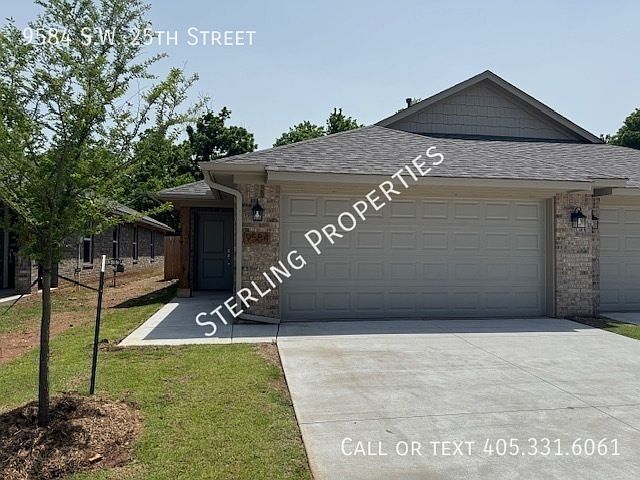 Discover your new home at the Mustang Valley Villas! This amazing 2-bedroom, 2-bathroom, and 2-car garage DUPLEX is situated in a gated community off Morgan Road, between SW 15th and 29th Street. This property is in a great location with excellent schools in the Mustang School District. You'll enjoy the gated community with a playground and walking trail, and the rent includes lawn care! The main living areas feature wood-look tiles, and the bedrooms are carpeted. You'll love the master suite with double vanities, a walk-in shower, and a large walk-in closet. The kitchen island overlooks the living and dining areas, and it comes with a stainless steel gas range and a built-in microwave. This property has a small fenced backyard that is pet-friendly. Don't miss out on this great opportunity! Fully fenced yard ** Lawncare Included in Rent** 2 Bathrooms 2 Bedrooms 2 Car Garage Central Heat & Air Gas Stove Kitchen Island Washer & Dryer Hook Ups