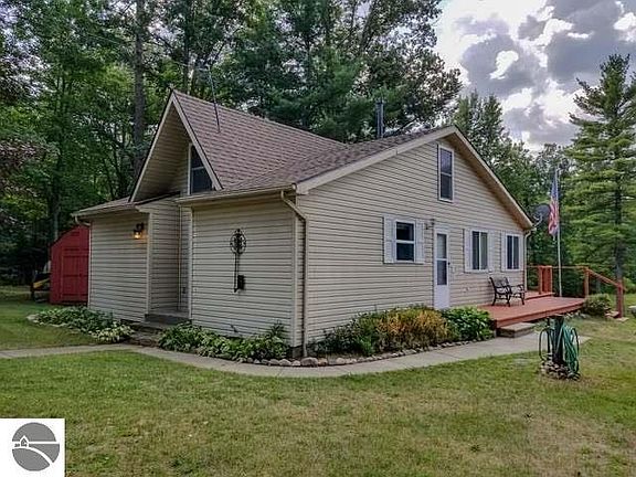 Riverfront Cozy Cabin or year round Home with 1292 sq feet of living space. Newly remodeled 3 possibly 4 bedroom, 1 bath, 1 1/2 story home on 1.50 park like acres with 24x30 pole barn. 2 bedrooms on main floor with large hallway with coffee bar and extra cabinets for storage, 1 full bath , open kitchen with eat in dining and living room with views of the Muskegon River from your kitchen and living areas, with your laundry room on main level also. Upstairs you will find extra space for sleeping with 4 built in custom beds ( 2 on each side ) and extra room for a office space or more sleeping area. Extra large sliding door leads out to your deck to bbq or relax in your hot tub down the steps, or head down to your private sandy beach area for a bonfire. Thousands of acres of state land and 55 miles of leota trails nearby. You can hop in a kayak or tube 3 miles at the bridge and get out in 2.5 hours at your Beach area. ***New updates include , vinyl plank flooring, tongue and groove walls, corrugated metal, new paint throughout, new appliances, new hot water heater , water pressure tank, pellet stove, sinks, lighting, kitchen cabinets, butcher block counter tops, water pex lines, electrical, 200 amp service, quick connect generator plug, hot tub, new drain field installed, new unique curved staircase was installed instead of a pull down attic ladder for easier access to the loft. Motivated Seller. Seller is a Michigan Licensed Real Estate Agent.