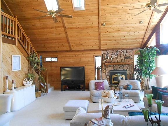 Just bring your toothbrush & groceries. This great home is being sold fully furnished. The great room features a soaring natural wood ceiling with skylights, a stone faced gas fireplace, and a wall of windows to the spacious composite deck with a view of Strawberry Mountain and a piped propane grill. The bright open kitchen has lots of cabinet and counter space, and a large island. The main floor private master suite has a dual sink vanity in the bath. Upstairs is the loft/third bedroom with its own private composite deck facing the back yard. The oversize 2 car garage is extra deep, and has space for a workshop. There is a paved drive and soft water.