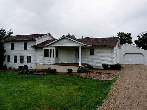 Amazing Home! You'll love the inside with it's unique design and excellent use of space. Spacious living and dining room w/bay window, updated kitchen, large utility room, 2 bedrooms on main level, open great room with stone fireplace on main level, elegant master suite and bath on second level features stone fireplace and walk in closet. Hardwood in kitchen, ceramic in master bath. Handy 24 x 30 detached garage with concrete floor and 220. Aggregate sidewalks and porches. Large concrete pad on portion of driveway. See this home today!