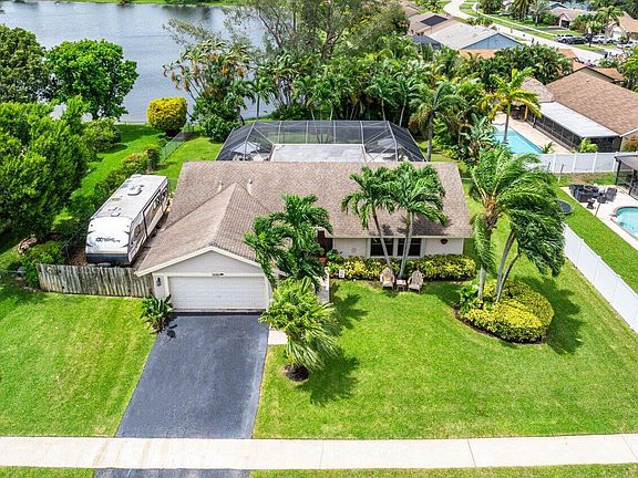 Discover your dream home in West Boca's low HOA community of Southwind Lakes! This beautifully designed 4-bedroom, 2-bathroom residence sits on an expansive 12,000+ sqft lot, offering endless possibilities for outdoor living. Dive into your private pool, unwind on the screened-in patio, enjoy lake views complemented stunning sunsets, and enjoy the peace of mind that comes with a fully fenced yard--perfect for family, fun and pets. With nearly 1,500 sqft of living space, this home blends comfort and style, featuring a 2-car garage and a layout perfect for entertaining. This split floor plan features three guest bedrooms, a full bathroom, and most importantly, a separate primary wing which features gorgeous wood floors, a walk-in closet, dual vanities, and recently updated walk-in shower. Other upgrades include accordion storm shutter protection for all windows & doors and a spacious side yard that is capable of housing an RV, boat, or any other extracurricular vehicles that you otherwise would have to keep at a storage facility!