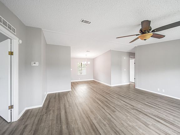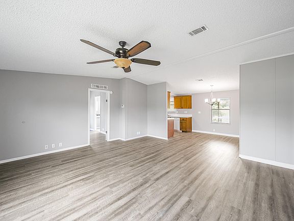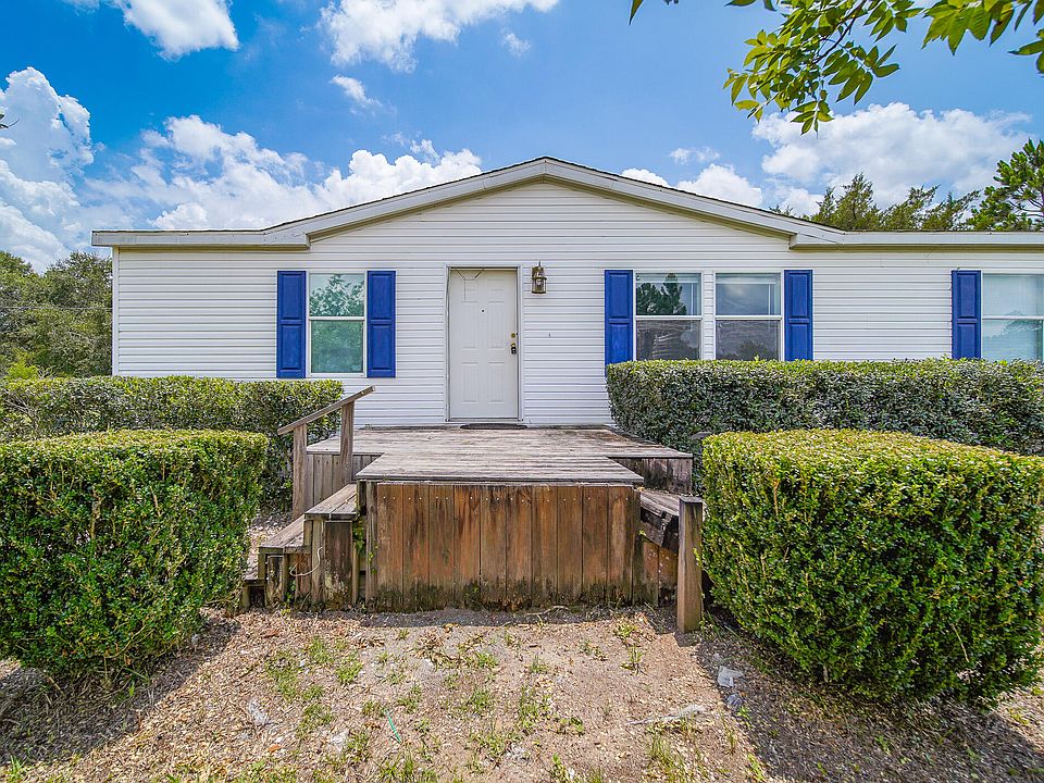 Spacious mobile home on over 2 acres in East Milton! This house has had numerous renovations including new LVP floors, fresh paint, and updated lighting throughout the interior! Inside features an open floorplan with tall ceilings and lots of windows making it feel extra large and bright. On one side of the house, the two guest bedrooms share a hall bath, and on the other sits the private master suite. The master offers a walk-in closet and an ensuite bathroom with a built in makeup vanity and skylight! The beautiful views of the backyard can be enjoyed on the covered deck and there is extra storage available with the two out buildings. There is plenty of space to have a garden, farm animals, or potential pool! ***All loan types welcome!!***