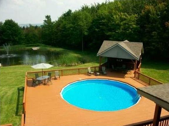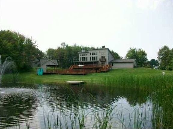 VIP pricing. Sellers will consider offers starting at $400,000. Beautiful 3 story contemporary on 4 acre manicured lot. 4 bdrms, 3 full baths, fully appl kit, 3 fplcs, soaring ceilings, wall of windows, loft overlooks LR area, fin walk-out bsmt, 200 amp service, c/a, 3600 sq' of multi-tiered wrap around decking, profess landscaped, autowater sys, cabana w/change rm, 1/2 acre stocked pond. Incredible 70x45 outbldg w/all utils including radiant heat, 200 amp, backup wood burning boiler sys can heat main house, water, pool & hot tub.