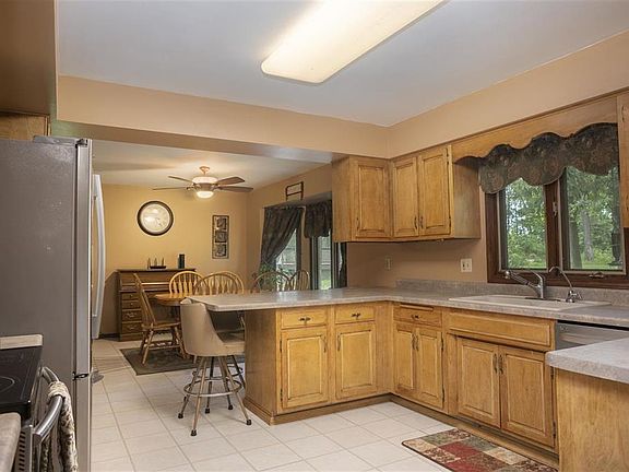 COUNTRY LIVING & BRING THE TOYS! THIS 3 BR, 2 BATH, 1443 SF RANCH HOME WITH ATT 2 CAR GARAGE SITS ON OVER 5 ACRES & HAS A TERRIFIC 64X34 OUTBLDNG. THE KIT WAS UPDATED IN 2010 & NEWER BAMBOO FLR THRU-OUT. THE SUNKEN LR HAS A WD BURNING FP TO ENJOY ON THOSE COLD NIGHTS. 3 GOOD SIZE BRS AND THE MASTER HAS A WALK THRU FULL BATH THAT COULD EASILY BE CLOSED OFF FOR PRIVACY. BSMT HAS A WET BAR RM BUT COULD USE SOME FINISHING TOUCHES. 3 SEASON RM OFF OF KIT FOR QUIET EVENING RELAXATION. THE 64X34 OUTBLDNG HAS TWO 14X12 FT DOORS, ONE ON EACH SIDE. 14 FT CEILING HEIGHTS & CONCRETE FLR WITH DRAIN SYS 220 ELEC IS RUN TO THE BUILDING ALONG WITH WATER SO THIS WOULD BE A PERFECT WKSHP. 2ND DRIVE ACCESSES THE BLDNG. ALSO A 24X40 FT OUTBLDNG THAT COULD BE RESTORED TO A GREENHOUSE OR USED AS COLD STORAGE OR A CHICKEN COOP. ADDTL GARDEN SHED OF 12X14 HAS CONC FLR AS WELL. THE ABOVE GROUND POOL NEEDS A NEW $200 LINER & WOULD BE UP & RUNNING. HOUSE SITS IN THE MIDDLE OF 5 ACS OF MATURE TREES