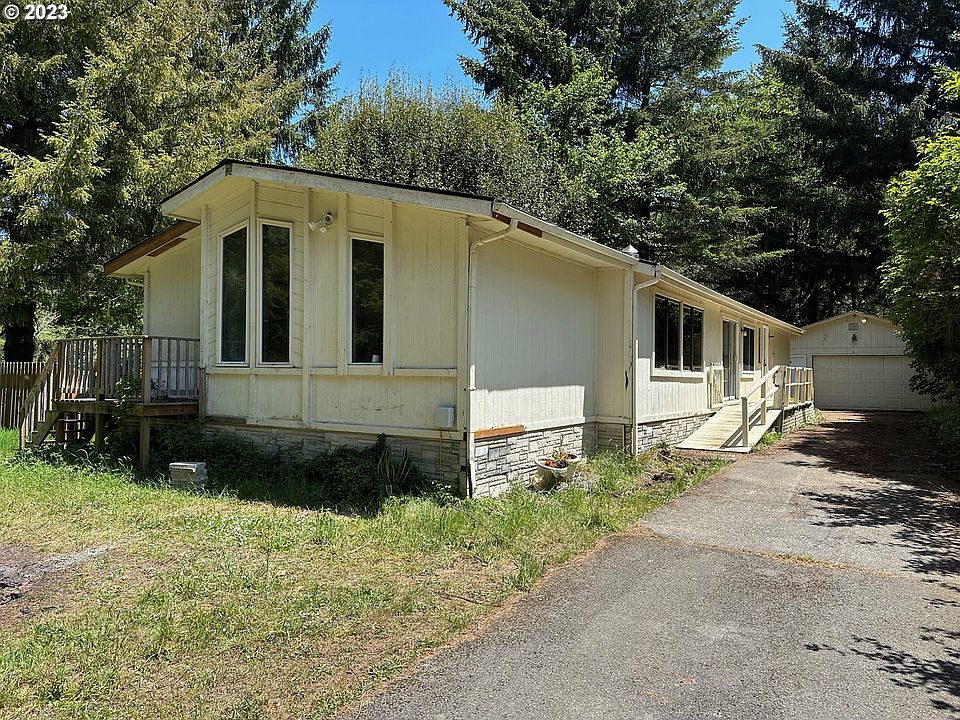 Great coastal location near Brookings. End of street cut-de-sac with no traffic. This 1981 double wide, manufactured needs some love. It's been poorly maintained, but the bones are good. Detached, oversized 2-car garage with plenty of workshop space. Plenty of room for an RV or garden. Semi-private with lots of mature foliage. Come bring this one back to life.
