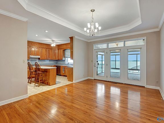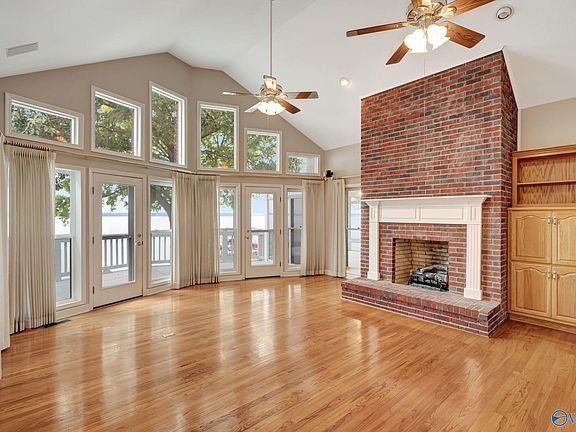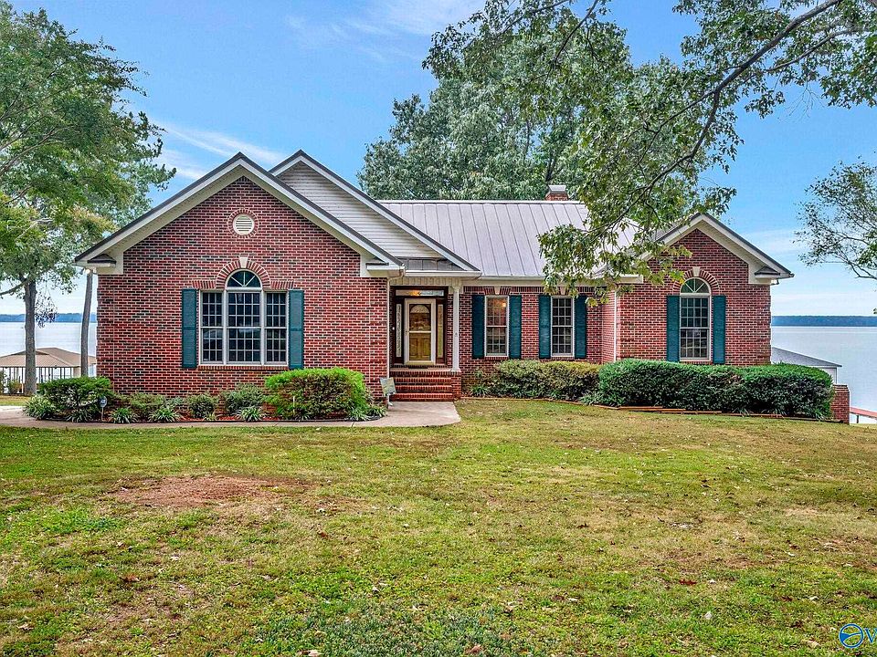 Don't miss this waterfront charmer!! Right on Wheeler Lake with amazing views & only 35 minutes to Redstone Arsenal, you will also get a boathouse with/boatlift & a large level lot with easy access to the water. There is a community dock. Inside, be prepared to take in the views. The living room has cathedral ceilings and a gas fireplace. There are two sunrooms to enjoy and a family room downstairs with wood burning fireplace. The cheerful kitchen has plenty of cabinets & counter space. The spacious master suite is on the main level and there are 2 additional bedrooms on the basement level. A single garage is conveniently located on the main level & a two car w/worksop on the basement level.