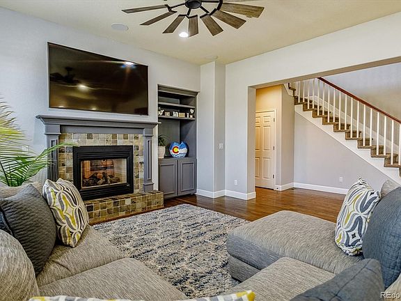 This highly captivating home in Stonegate built by Infinity homes has been meticulously maintained inside and out. Wonderful use of space with an open and inviting floor plan with an abundance of natural light. As you enter the home you will find an office and formal dining room with a double sided fireplace, a remodeled gourmet kitchen, large kitchen island, planning desk, and breakfast nook. The family room is just off the kitchen and great for entertaining large groups. Study offers french doors with a double sided fireplace. Upstairs offers four large bedrooms plus a huge loft! The master bedroom is private with a luxurious bathroom and huge walk in closet. Two of the bedrooms upstairs include a Jack-N-Jill bathroom and the third bedroom has it's own private bathroom. The finished basement offers a guest room, full bathroom, huge rec room and ample amount of of storage. Walk to top rated schools, community trails, community pool, tennis courts and much more. Conveniently located close to grocery stores, parks, highways and DTC. Do not miss out on this great home.