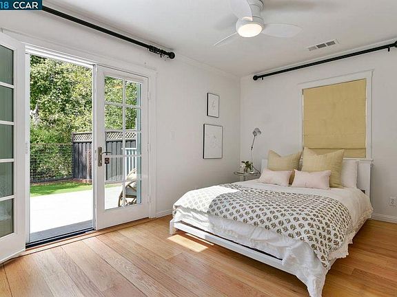Charming Trail neighboorhood cul-de-sac location next to Leigh Creekside Park. Dual pane windows and two sets of french doors leading to side patio and creekside yard. Open living/dining kitchen floor plan with vaulted beam ceilings and an office nook. Air conditioning and fans, Caesarstone counters, Shaw farm sink, Thermador gas range, Bosch dishwasher and refrigerator, built in microwave, gas fireplace. Detached two car garage with HVAC, to use as an office or artist studio and wired for electric car charging. Fenced flat yard, pet friendly, with a playhouse or potting shed, biweekly gardener. Close to downtown Lafayette, BART, top rated Lafayette Elementary and Stanley Middle schools. Tenant pays utilities, owner pays gardener and alarm.