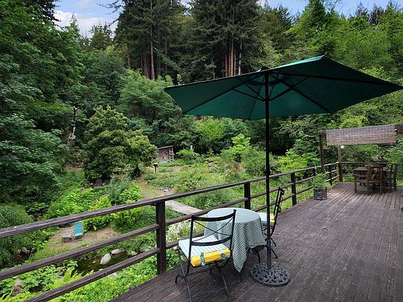 CORRALITOS CREEK SIDE CHARMER!! Quaint 2+ bed 2 bath Cottage style home, lots of windows bring the Shangri-La in, Cozy living room with fireplace & views of the gardens & creek. Kitchen has granite counter tops & magical views. Large unfinished attic,finished basement, detached garage, heirloom roses abound (part of original Roses of Yesterday property) tea house/artist studio featured in Martha Stewart, Numerous sitting areas to enjoy the magical setting, pools full of large trout,garden beds, fruit trees