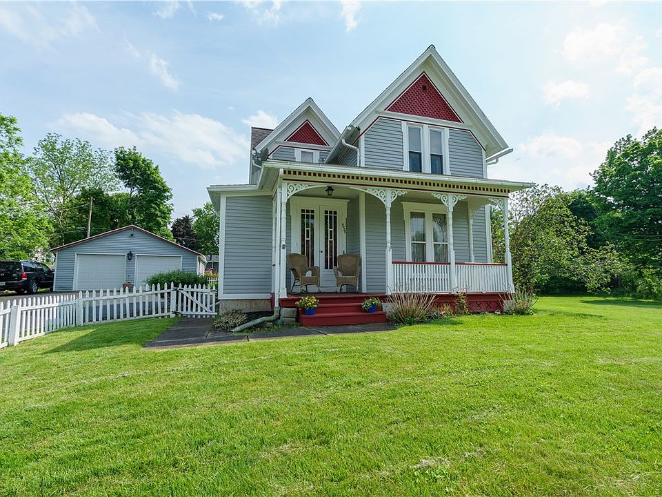 Where can you find 5 bdrms/2 full baths at this price? Right here! This stately restored Victorian is an AMAZING VALUE! "Henrietta Architectural Heritage Award 1994" Captures essence of days gone by yet has updates/improvements any homeowner could want! Fully fenced lot (3/4 acre) w/room for any outdoor activities/additions you'd like & offers a large paver patio that will accommodate your outdoor events! There's a detached shed & the many perennial plantings are blooming! Venture inside & discover so many original elements, among them hardwood flooring throughout all living areas! Begin with the splendid front porch which leads you into the front foyer, showcasing the original front staircase & convenient powder room. Front LR area, family room & formal DR flow nicely into each other & can be separated in one area by pocket doors! Sizeable kitchen, loads of cabinetry, granite topped island w/cooktop & the eat in area of the kitchen overlooks paver patio. Off kitchen is hallway/mud room & full bath/laundry. Rear stairwell to the 2nd fl where you'll find 5 beds/1 full bath. 2 rear bdrms can be easily separated from main portion of house & could be in-law area/Airbnb