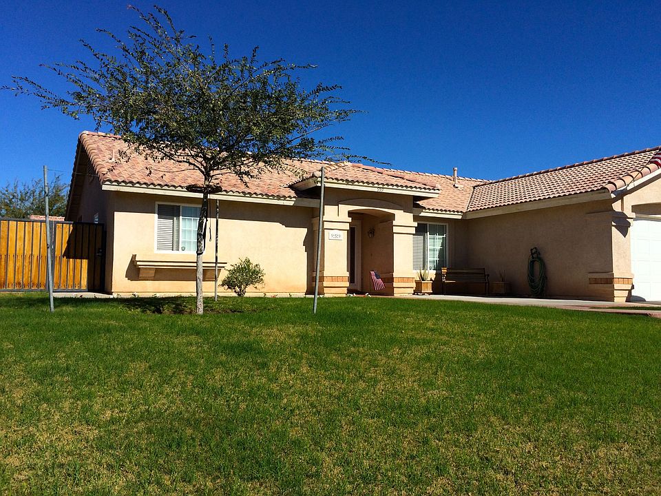 This beautiful and immaculate 3 bedroom, 2 bathroom Ventana Ranch home boasts many upgrades. The home displays beautiful four-year-old ceramic tile in the kitchen and bathrooms and carpet in the bedrooms and main living area. The kitchen features ample space to entertain with a breakfast nook. The family room offers tall ceilings and access to the covered patio. The master bedroom and bathroom are sure to please with a large walk-in closet, dual vanity sink, newly stained cabinets, and a large soaking tub. The laundry room has a plenty of space for additional storage along with the built-in cabinets in the hallway. This home has many important upgrades: blinds throughout the home, new A/C unit less than 1.5 years old, new sprinkler system and landscaping, new fence and gates.