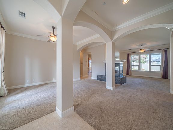 Well taken care of home on the West side Great floor plan with beautiful crown molding - this 3 bd 2bath home a formal dining with french doors to the front courtyard. Family room has a unique 3 sided fire place. Open kitchen with plenty of room to get around, updated appliances in 2016. Spacious laundry room with custom cabinets and an incredible pantry with plenty of storage. Primary bdr has mini split, nice large doors to the outside, walk-in closet, jacuzzi tub and separate shower. Second bath has double sinks. Ceiling fans in all rooms. Newer HVAC (2016), New garage doors (2017) Newer fences, 10ft high ceilings in the main house and 9 ft. in the bedrooms. Nice covered patio outside to enjoy along with Orange, Grapefruit and Lemon trees! Take some time to check out this exceptional ho