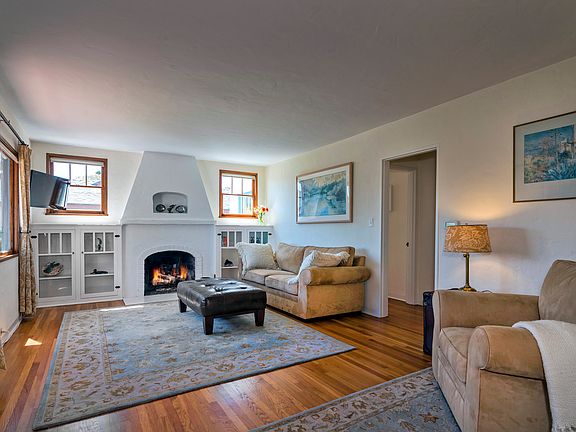 Charming 1929 Spanish View Home on Lower Riviera Steeped in Santa Barbara history and filled with sunny charm, this South facing quintessentially Spanish home sits perched on the lovely Lower Riviera with beautiful views of the city, ocean and islands. Nestled in a well-established neighborhood filled with similar vintage homes, this 2 bedroom 1 bath single level residence also enjoys an inviting back yard laced with quaint stone walls, a peaceful fountain, and plenty of room for entertaining guests on the large brick patio. Views abound from the living room, dining room and master bedroom as well as from the back yard, and the home has been well cared for featuring restored bathroom and kitchen and much more. Perfectly designed for our Santa Barbara Lifestyle, the home has been well cared for and nicely restored. Views are everywhere to be enjoyed! While relaxing at the dining room table, settled down on the couch by the fire in the cozy living room, having wine on the front porch, and even from the master bedroom and the playful garden swing on the back yard terrace. The living room is light and sunny, yet the nearly new awnings keep the room comfortable during the day. A cozy fireplace with built in art nook is flanked by vintage display cabinets which mirror the design of the windows on either side, completing the focal point for this inviting room which also benefits from the rich glow of the oak hardwood floors found throughout the home. The kitchen is set in the heart of the home and retains its vintage charm yet enjoys modern appliances and other upgrades as does the nearby convenient laundry room. Right off the kitchen is a room that has been used as a breakfast nook and office in the past. Nestled between the kitchen/office and the living room is a quaint formal dining room, cooled by ocean breezes via the vintage ‘Santa Barbara’ style door out to the front patio. While dining you are gazing out over the city and as far off as the Channel Islands on a clear day. The master bedroom is cheery and light and can easily accommodate a King sized bed, the second bedroom has a lovely built in corner cabinet and easily manages a Queen sized bed as well. The welcoming and private back yard is a great place for family and friends to enjoy the ambiance created by blending a large level brick patio with the surrounding lawn and terraced rock planters all set to the relaxing tune of water trickling through a Spanish fountain on the patio. You can even take the path to the upper terrace and sip a glass of wine on the swinging lounge while looking out over the city to the ocean. High enough for views, but low enough for quick access to downtown, this is the perfect ‘move in ready’ Santa Barbara dream home.