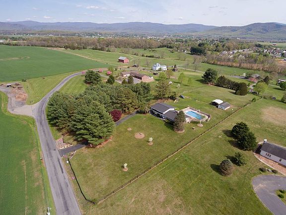 This spacious, solidly built, one owner home built on 2.12 acres with a three-car garage offers peace and tranquility just minutes from Harrisonburg, Massanutten and Elkton with amazing mountain views in nearly every direction. Enjoy four bedrooms, an office, two bathrooms, formal living room, formal dining room, an updated kitchen with solid surface counters and a tile backsplash, a family room with fireplace, basement rec room, workshop and much more. Don't miss the paved driveway, 638 SF three car garage, 20' x 46' in-ground pool, ample storage room, recently replaced roof, 400 AMP electrical service and water softener.