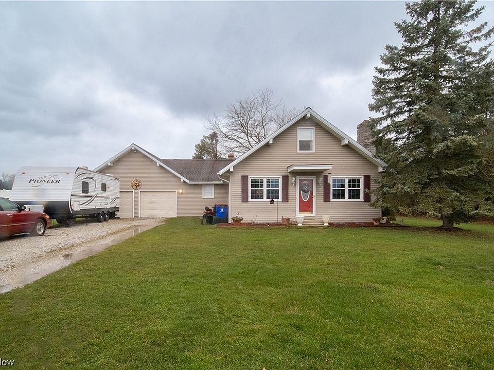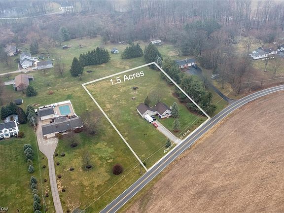 1.5 acre bungalow with 2 bedrooms 1 bath, laundry and study nook, Kitchen, dining and living room with fireplace on on the first floor. There is a second floor bedroom on the 3rd floor that needs some work to make it into the 3rd bedroom but has a good start on it. Newer windows, siding, and roof in 2010, 2011. A very large 2-car garage this is double deep for a workshop is an added plus. This home is adorable and is perfect for a person starting out or scaling back. Come see for yourself. (Partial basement). Close to Hartville and 224 making travel a breeze.