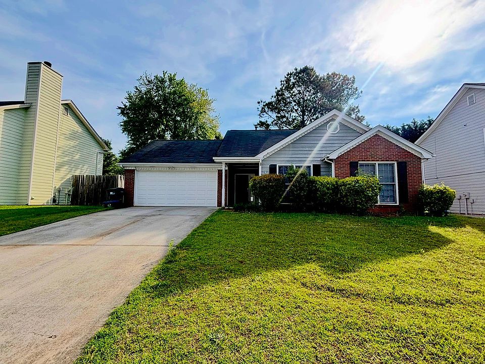 Welcome home to this inviting 3 bedroom, 2 bath residence offering comfort, space, and charm in every detail. The spacious great room features a cozy brick fireplace with a gas starterperfect for relaxing evenings at home. Enjoy the open-concept layout that flows seamlessly into the country-style kitchen and dining area, making entertaining a breeze. The primary suite boasts a beautiful trey ceiling, a large walk-in closet, and an en suite bath with a tub/shower combo. Two additional bedrooms and a second full bath with a tub/shower combo offer plenty of room for family or guests. Luxury Vinyl Plank flooring and plush carpeting throughout add style and comfort. Step outside to a fully fenced wood back yard with a private patioideal for outdoor dining or enjoying quiet mornings. A spacious two car garage completes the home. Don't miss out on this well-maintained home that offers both charm and convenience! WE NEVER ADVERTISE ON CRAIGSLIST. WE DO NOT ACCEPT VENMO, ZELLE, OR CASH APP PAYMENTS GAMLS: 10566450 FMLS: 7617473 On Supra Directions: From I 85 North exit Pleasant Hill Rd and turn right, continue 2 miles to left on Cruise Rd, left on Merrimac Way