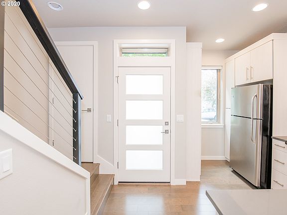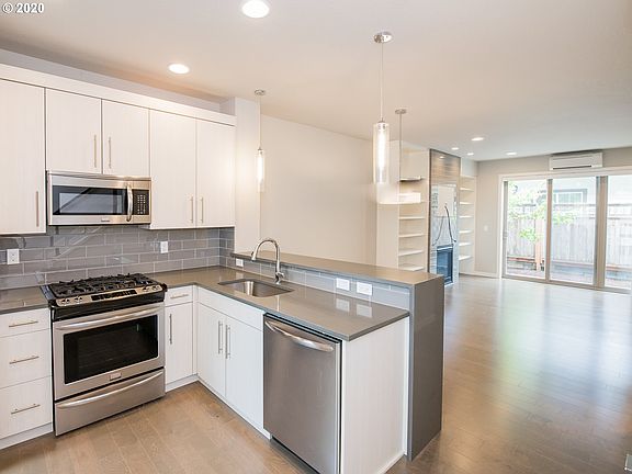 High-style meets efficient urban living in this bright & airy townhouse. Open plan spacious main floor has powder room, wood floors, and kitchen made for cooking with easy access to private fenced yard. Upstairs, both bedrooms have ensuite baths; master has vaulted ceilings, double closets & soaking tub. Handy upstairs laundry. Closets galore. Prime location w/ easy access to multi-modal transit & Mississippi Ave hotspots. Energy-efficient mini-split provides heating + cooling. See virtual tour!