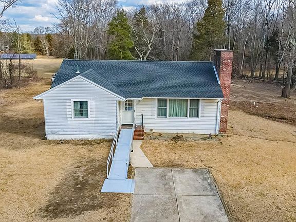 Over 2 acres! With a little TLC, this can be the home of your dreams on the land you have been looking for. So much has already been done, including a NEW roof, windows and doors, all installed in 2024. Large horseshoe driveway welcomes you to this ranch home. The home itself needs some care, but it is a blank canvas to make it your own. The home features spacious rooms, hardwood floors, and fireplace with beautiful brick surround. There are three nice sized bedrooms, all with hardwood floors, and one full bathroom. Full basement provides plenty of storage or finish it off for more living space. AC unit is a year old and the boiler has been serviced and maintained. Come take a tour and plan your next home!