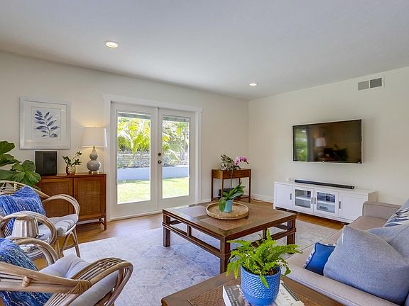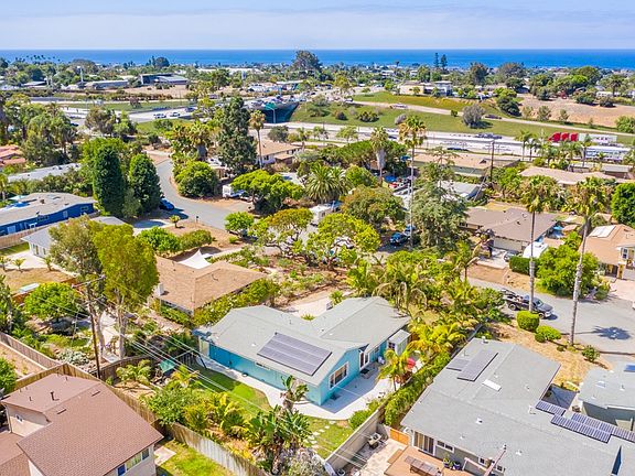 Mid-Century Leucadia beach home located on a secluded cul-de-sac street about a mile to Beacons Beach. This bright and open home offers large front, side and rear yards to enjoy our outdoor lifestyle, 6 person Spa, solar, fruit trees, 2yr old water heater & furnace, updated electrical. This updated home has wood floors, updated baseboards, french doors, a Spacious kitchen that opens to the family room, breakfast nook and built-in computer desk too. Plus a great out-door shower with hot water.