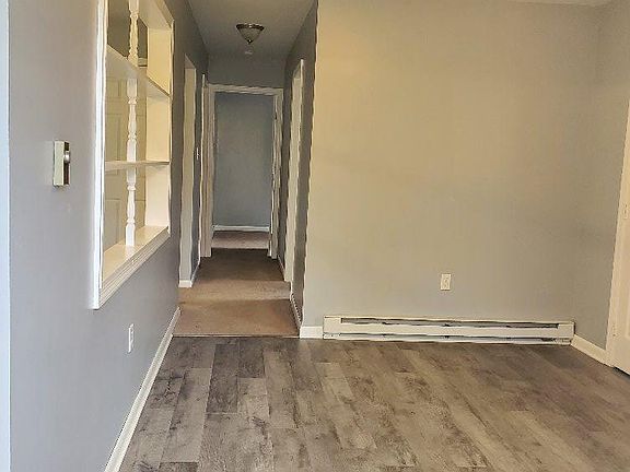 Quiet country duplex with large yard. 2 bdrm, 1 bth, w/d hookup, eat in kitchen. Electric baseboard heating. Freshly painted throughout, new laminate flooring in kitchen and living room. Deck is freshly painted. Has a storage shed. No Pets, don't even ask. No smoking. Must have 1st months rent and security deposit before moving in. Proof of employment, credit check and background check will be done. You are responsible for keeping the grass mowed and the weeds pulled. No partying or loud music. It's a quiet neighborhood. This is a 1 year lease