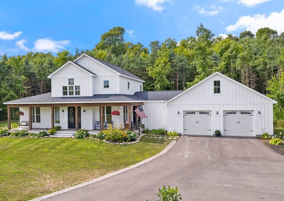 2017 custom built modern farmhouse with all of today's features situated on over four beautiful acres! Large first floor master suite with walk out to lovely covered porch and backyard. You will love the bright custom kitchen with large island and separate coffee bar/pantry. Open and inviting living room with gas fireplace and reclaimed wood mantle. Custom built-ins in the mud room, laundry room with barn door, dining room and fifth bedroom/office complete the main level. Upstairs you will find a nice loft area with several windows and natural light that can be an office, playroom or tv room for the kids or guests. Full bathroom with barn door and two bedrooms with walk-in closets. This home offers a finished basement with bedroom with egress window, rec room and tons of storage! Outside you will find a large pole barn with electric, full generator hook up and it's own private drive, a charming chicken coop, wildflower meadow surrounded by beautiful pines and relaxing front and back porch for entertaining. Bonus room roughed in and ready for finishing above the garage with private entrance. Great location with access to Lake Charlevoix public boat launch, hiking trails, snowmobile trails and Boyne Mountain only 20 minutes away. Come and enjoy the best of northern Michigan! *owner is a licensed agent