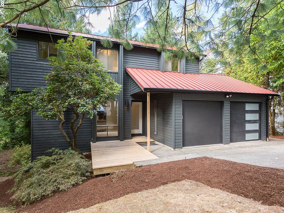 This beautiful NW contemporary home is ensconced in nature, backing up to hundreds of acres of green-space and situated on a wooded butte. The neighborhood is late mid-century and full of cool homes. The house itself has just been lovingly remodeled with many new systems: furnace/heat pump, deck, gutters, garage doors, water heater, paint inside and out, fixtures, hardware etc etc. Do yourself a favor and come see it for yourself!