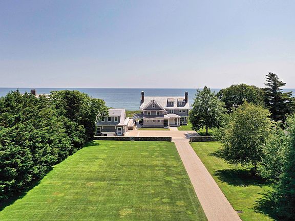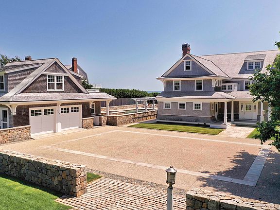 Seaside Sophistication! Overlooking the beautiful waters of Nantucket Sound sits this sophisticated yet intimate oceanfront estate. The collaborative efforts of the owner along with architect Mark Hutker & Associates and builder C.H. Newton Builders transformed this residence into a stunning modern oasis with 5,605 sq. ft. and beautifully balanced living areas all oriented toward the water. Attention to detail and quality becomes immediately apparent when approaching the property exhibited by the long driveway and rolling green lawns. Equal care and craftsmanship can be found in the elegant interior spaces rich in detail, modern comforts, and extraordinary ocean views. Throughout the home a color palette of warm cremes and natural sands complement the custom millwork and finishes. The principal rooms are beautifully proportioned, and all offer expansive views including the well-appointed and carefully planned kitchen opening to the dining area with fireplace, a formal living room with fireplace and a glass enclosed porch running the length of the home overlooking the water. A primary bedroom suite with stunning water vistas and three additional bedrooms are located on the second level. The third level features a two-room suite customized with warm woods and curved ceilings, spa-like bath and extraordinary views. This splendid 2.33-acre property has been beautifully landscaped for privacy and a look that is peaceful, sculptured and blending into the symmetry of the house. An in-ground pool and multiple patios overlooking the water entice you to visit these outdoor spaces. And a path from the lawn's end leads you to a private white sand beach with 150+/- feet of water frontage. These outdoor havens all combine to create the ideal setting for entertaining or simply relaxing and soaking in the sweeping views. Also offered is a beautiful one-bedroom carriage house above the garage and a separate two-bedroom guest house offering ample room for family and guests. This exquisite oceanfront estate, located on one of Cape Cod's most coveted streets and overlooking one of the Cape's most beautiful beaches, is truly a one of a kind offering for the most discriminating buyer. The information contained herein has been obtained through sources deemed reliable but cannot be guaranteed as to its accuracy. Buyers are encouraged to do their own due diligence through independent verification. Please note square footage, bedrooms and bathrooms includes the main house, upper level of the carriage house and the guest house.