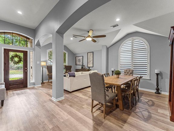 Updates galore in this beautifully maintained single-story home in Stewart’s Forest w/ a private backyard oasis. Property boasts a 3-car garage, premium stainless steel appliances, LVT flooring, & stylish, modern finishes at every turn. Upon entry, you will find a sitting area or flex room with formal dining. Updated kitchen has a skylight & breakfast room w/ sliding glass doors. Spacious living room offers a cozy fireplace and views of the pool. Additionally, the home features a media room & 3 secondary bedrooms. Primary suite includes a sitting area & an extensively remodeled ensuite with dual sinks, a walk-in shower, & two Elfa customized walk-in closets. Step outside where you'll find the private backyard escape with large covered patio with ceiling fans, sparkling pool & spa, perfect for entertaining or unwinding! Additional upgrades include new floors, Elfa shelving in garage, roof in 2022, generator transfer switch, fence in 2023, custom shutters & drapes throughout & more!