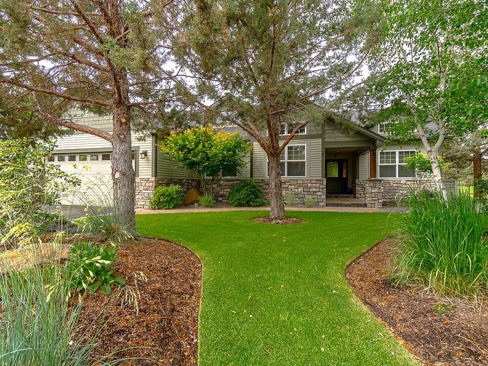 Beautifully updated custom home on the first hole of the Challenge Course in Eagle Crest Resort! Open-concept floor plan with wide plank hardwood floors, river rock fireplace, and hickory built-ins. Chef's kitchen with slab quartz countertops, high-end stainless appliances, gas range, & granite island with stainless farmhouse sink & breakfast bar. Dining area with built-in buffet, wet bar, and bookshelves. Master suite with His & Hers walk-in closets, dual vanity, touch-spot mirrors, & tiled walk-in shower. Media/Flex room, den with floor to ceiling built-in cabinetry and desk. The guest room, full bath, half bath, & utility are on the main level. Additional bonus room upstairs with ductless heat and cooling. Oversized triple car tandem garage. Beautifully landscaped and well-maintained yard with mature trees and plants. Multiple covered patios for enjoying time outside. Eagle Crest is home to three 18 hole golf courses, three sports centers, and miles of trails.