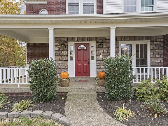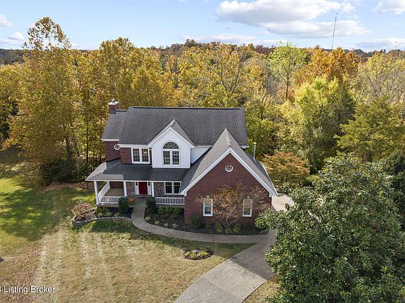 Reduced more than $20K!!! This a beautiful all brick home in the prestigious Persimmon Ridge golf course community. This home boasts 4 bedrooms upstairs and an additional bedroom in the fully finished basement. The home also has 3 full baths and an additional powder room for guests.The utility room with extra storage sits on the first floor and is covered with ceramic tile. An open floor plan is perfect for entertaining. The expansive kitchen contains a large peninsula covered with high end granite and has custom cabinets throughout. Hardwood floors run throughout the entire first floor. You will enjoy the two cozy gas fireplaces on cool fall and winter days. Both family rooms lead onto large covered decks which overlook your picturesque private backyard, just perfect for entertaining. Beautiful mature trees hug the yard and a creek snakes across the back creating a lovely oasis. You will love playing basketball on the court in the backyard containing a Gorilla Goal. The walk out basement has an additional living area and as mentioned above a gas fireplace, full bath, extra bedroom and an executive's office.