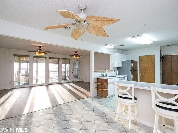 INTERIOR PROFESSIONAL PICTURES COMING AFTER PAINTER IS FINISHED INSIDE PAINTING. PICTURESQUE MAGAZINE COVER SHOT SUNSETS is all that can describe this cozy cottage with a tree house feel. Directly on Bon Secour bay and Mobile bay where the sun sets pretty much at your door step every evening. Mature oaks and Beautiful landscape make for the perfect place for family to enjoy. The raised extra wide golf cart width dock is perfect for docking multiple boats for parties. This home has withstood years of multiple named storms and has never had damage to the home or dock!! not a BOARD missing from the raised pier!! Custom home builder built as his families vacation weekend home and built to last. You have to see this property to truly take it in to appreciate what it has to offer. Under the house covered area is perfect for cookouts and gatherings.