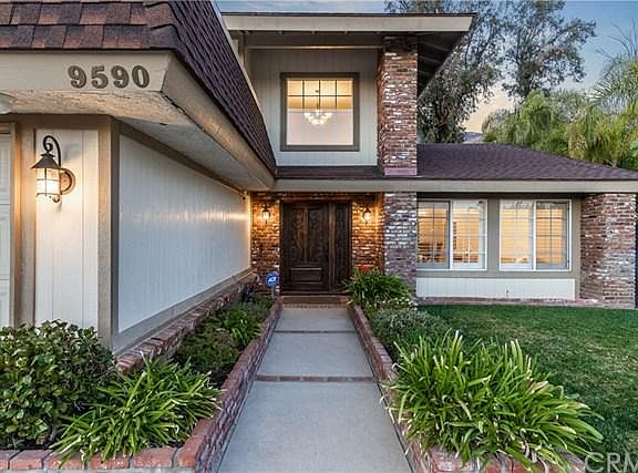 BEAUTIFULLY REMODELED POOL HOME W/RV PARKING. Manicured grounds w/green grass, circular driveway & majestic mountain backdrop. A concrete walkway w/brick ribbon & planters lead to the covered front porch & through a new custom front door. A tiled entryway w/soaring ceilings, a sweeping staircase & opens into the living rm. Living rm w/hardwood floors, vaulted ceilings, recessed lighting & two windows w/plantation shutters overlooking the front yard. Adjacent formal dining rm w/chandelier & a view of the backyard. Remodeled kitchen w/custom cabinetry, quartz countertops, chevron patterned backsplash, stainless steel appliances, island, breakfast nook & open to the family rm. Family rm w/tiled floors, brick fireplace, built-ins, recessed lighting, bar w/wine fridge & a slider to the backyard. Downstairs bedroom, remodeled bath & indoor laundry rm. Upstairs master w/double door entry, recessed lighting & retreat w/slider to a sprawling balcony w/city views. Master bath w/dual sinks, granite counters, walk-in shower & separate tub. Two additional bdrms upstairs w/sliding doors to a balcony overlooking backyard. Remodeled hall bath w/custom tile shower/bath. Backyard features a pool & spa w/pebble finish, a huge detached cabana w/ceiling fans & lighting, concrete decking w/brick ribbon, a fire pit, two spacious side yards, one w/grass & one w/concrete. Tropical landscaping on perimeters plus a stairway to upper level w/room for sport court or horses w/rear access through trail.