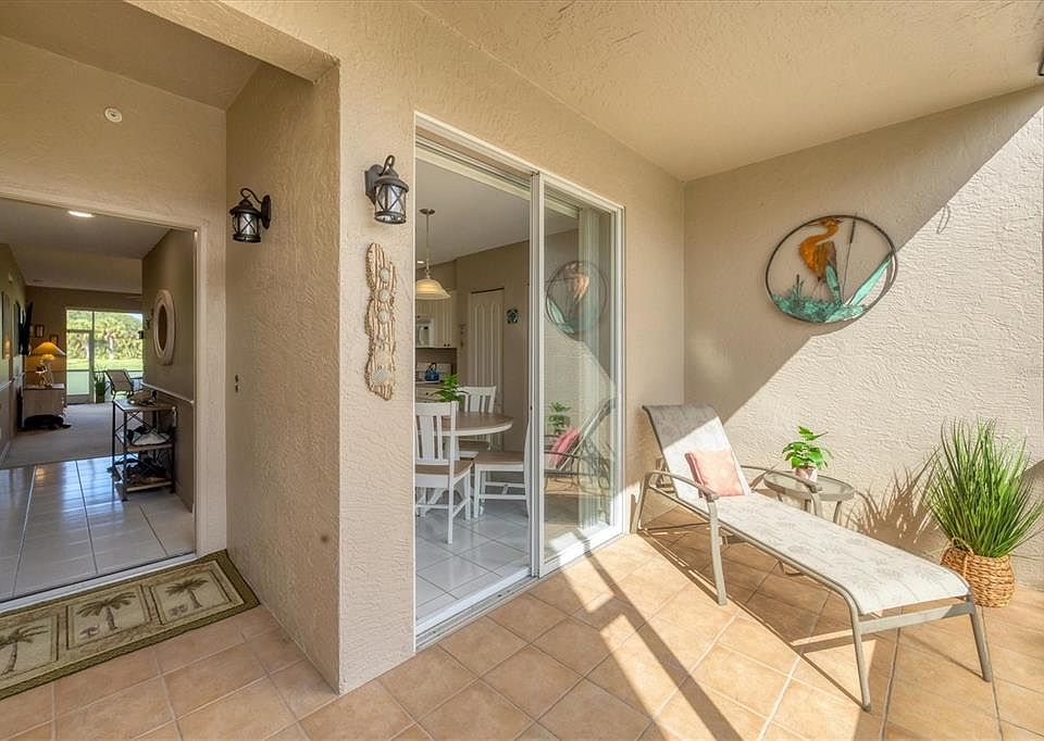 In desirable South Sarasota, Stoneybrook at Palmer Ranch is a popular gated community centered around a vibrant, member-supported country club with a restaurant and full bar. Residents enjoy an 18-hole Arthur Hills golf course, newly remodeled by Kipp Schulties, along with Har-Tru tennis courts, bocce, a fitness center and community pool. The location is ideal, close to shopping, Siesta Key beaches, Sarasota Memorial Hospital, and the rich arts and cultural venues of downtown Sarasota. This High Gate condominium offers 1,333 square feet of easy ground-floor living. The front lanai faces east for morning sun, while the rear screened lanai overlooks the golf course, ideal for sunset views. The kitchen includes a breakfast nook with sliding doors to the front lanai, a closet pantry and a pass-through to the great room. The great room combines living and dining areas with sliding glass doors opening to the rear lanai. The primary suite is light filled with a bay window, sliding doors to the lanai, two walk-in closets and an en-suite bath with a walk-in shower. The guest bedroom is at front of the home with access to a second full bath. Additional features include a laundry room with storage, a one-car garage conveniently across from the entrance, and proximity to the community pool, just a short distance away. All assessments have been paid, including the 2025 roof replacement and the golf course renovation contribution. Ownership includes one-time club contribution of $10,000, annual golf and country club membership of $6,857, annual food and beverage minimum of $900, Palmer Ranch fee of $175 annually, Stoneybrook Boulevard fee of $250 annually, and a High Gate condominium fee of $6,424 annually (includes roof maintenance, water and sewer). This welcoming residence combines ease of maintenance-free living with amenities of a country club lifestyle in one of Sarasota’s sought-after locations.
