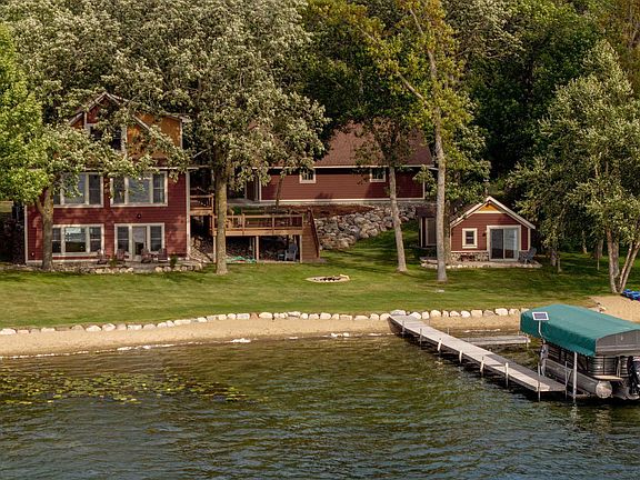 Discover lakefront luxury at 9591 Ossawinnamakee Rd in Pequot Lakes, MN! This stunning property features 4 bedrooms and 3 bathrooms across 3,468 square feet of elegantly rustic living space, plus a charming guest house with a kitchen, living room, 2 bedrooms, and a ¾ bath. Enjoy 108 feet of pristine shoreline, panoramic lake views, and a cozy pine-covered interior. The open-concept great room boasts vaulted ceilings and floor-to-ceiling windows that fill the space with natural light. Cooking is a breeze in the gourmet kitchen that’s equipped with high-end appliances and a spacious island, perfect for entertaining. Also on the main level, the owner's suite offers more breathtaking lake views and a luxurious en-suite bathroom. Downstairs, the family room walks out to the lake and includes an impressive, full wet bar. Outside, enjoy a maintenance-free deck, private dock, and sandy beach area for summer fun. Located in the heart of the Brainerd Lakes Area, this property provides easy access to golfing, dining, and outdoor recreation. Don’t miss this rare opportunity—schedule your private showing today!