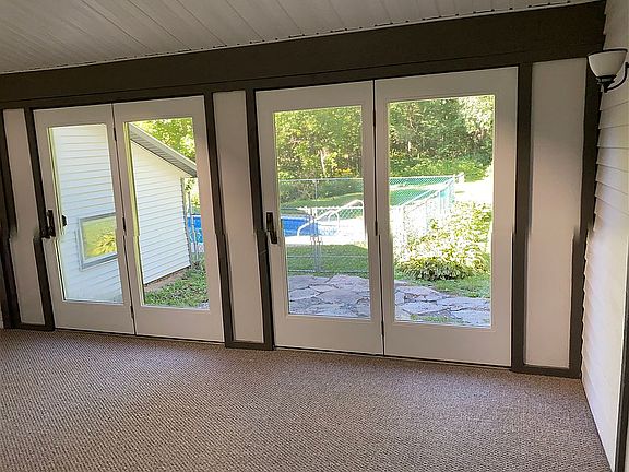 If a spacious open interior plus acreage that backs up to woods are on your "must have" list, then look no further! Spread out in a 4 bedroom 2.5 bath w/ amazing sunroom overlooking an inground pool ( with brand new liner). Experience the jaw dropping fireplaced living room with palladian windows and vaulted ceiling, enjoy low taxes & utility costs and and all NEW everything including the roof! Shaker kitchen cabinets w/ Granite counters & the latest black stainless appliances. Even though you are only 5 mins from everything, you will feel like you're in the country with this kind of privacy! Home affords endless possibilities you will not get in new construction like massive attached garage, lower level bonus space and huge front porch with incredible detailing too!