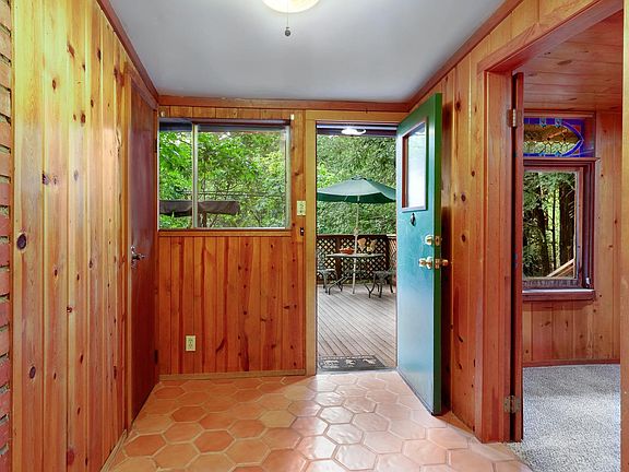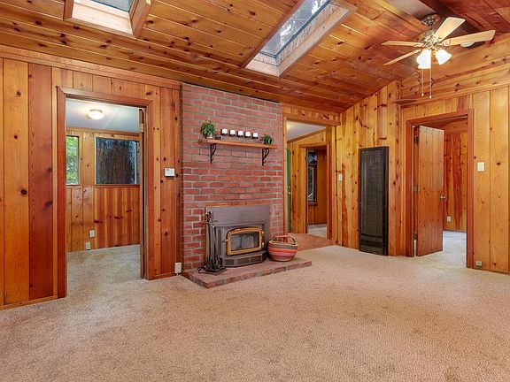 Step into yesteryear! This enchanting 1930's two bedroom one bath cabin will please your old timey senses. This cozy home features knotty pine walls and ceilings, 6 skylights plus a newly updated kitchen and bathroom. The kitchen is freshly painted and includes new granite counter tops and wood cabinets. The bathroom is freshly painted and features a new wood vanity with a granite top and a modern above the counter sink. New carpet in living room, both bedrooms and bonus room; terracotta tile in the entry, kitchen and bathroom. The living room fireplace brings warmth for those chilly mountain evenings. Entertain on your extra large Trex deck and enjoy the peacefulness of the surrounding redwood trees - perfect for your morning coffee or your glass of wine in the evening. This extra large lot is over 18,000 square feet.